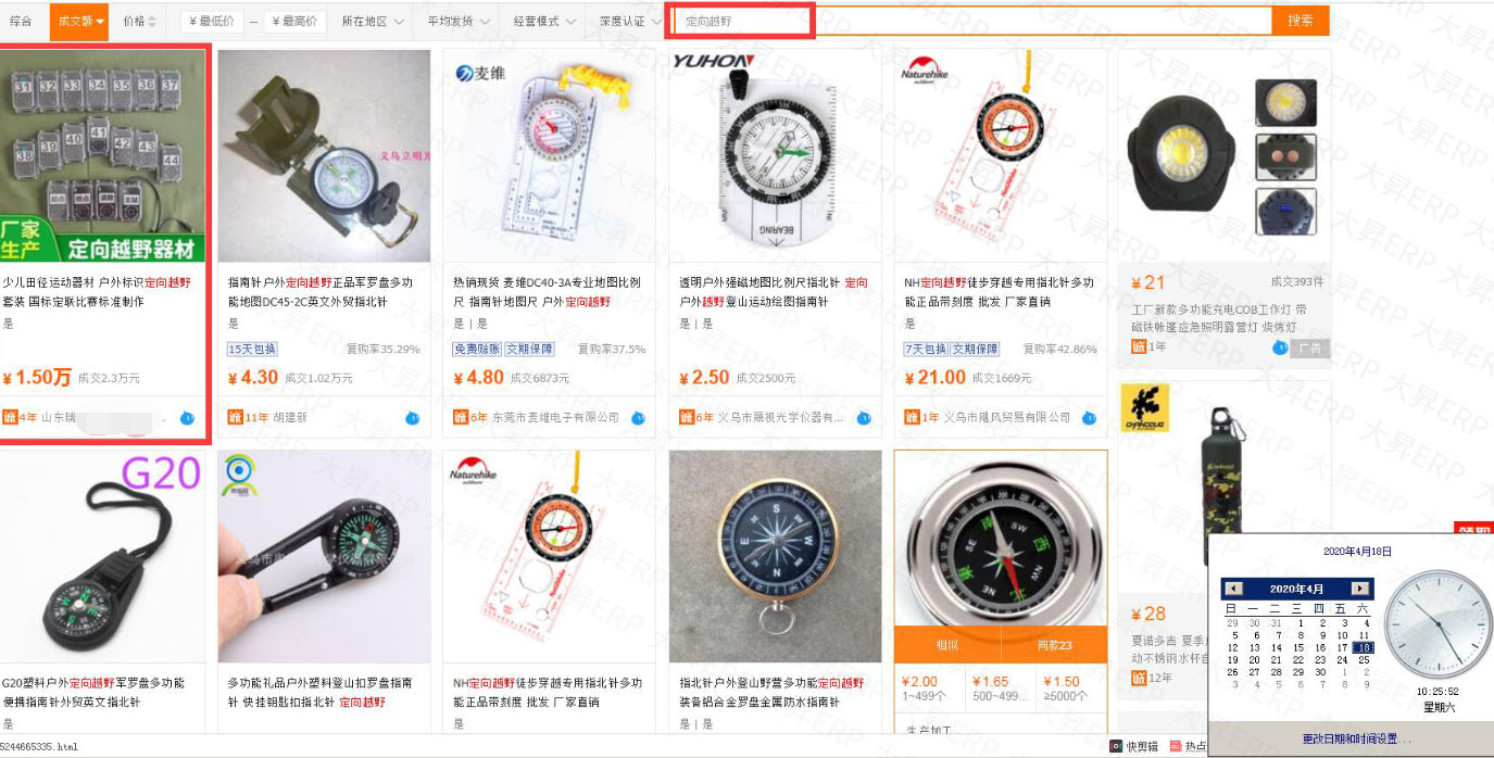山东省机械行业王总使用大昇ERP ,店铺核心关键词定向越野 ,综合排名在阿里首页...