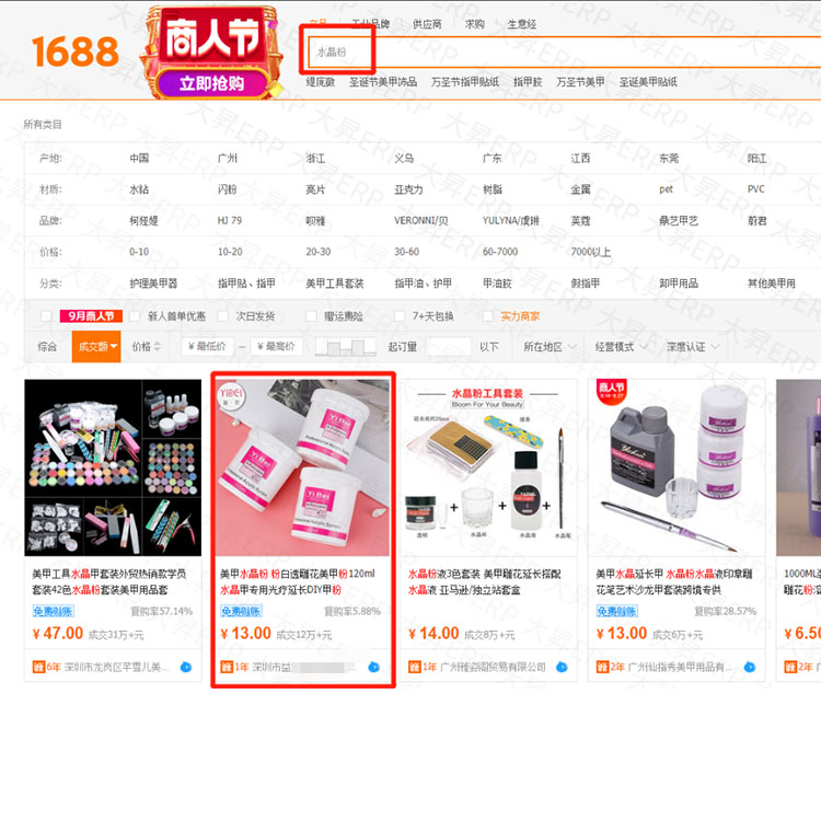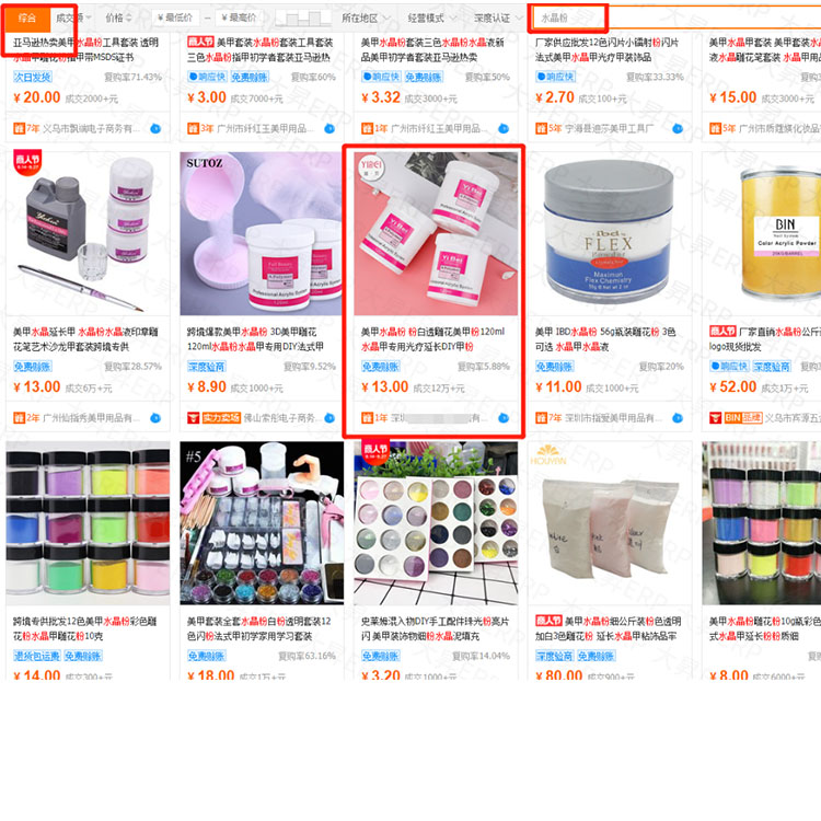深圳市美容行业蔡总使用大昇ERP ,店铺核心关键词水晶粉 ,综合排名在阿里首页第一页,成交额在阿里首页排名第二名,效果非常不错的