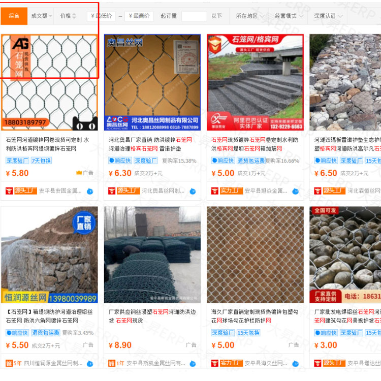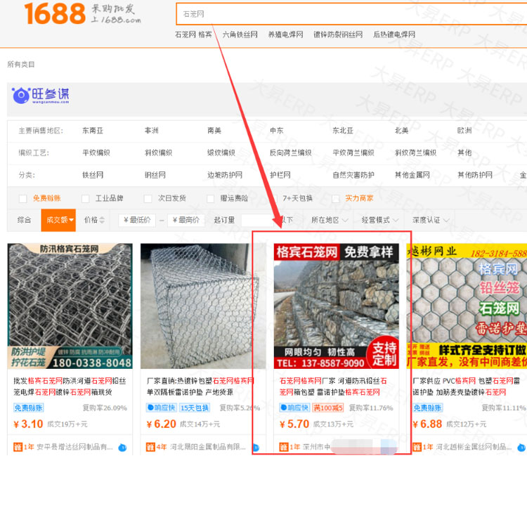 深圳市金属制品行业邓总使用大昇ERP ,店铺核心关键词石笼网,综合排名在阿里首页第一页,成交额在阿里首页排名第三名,效果非常不错的