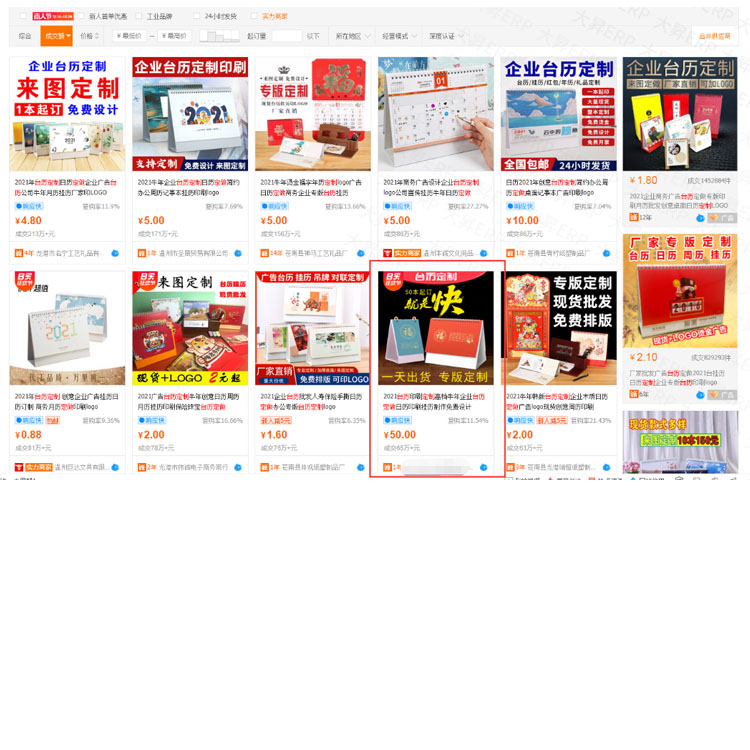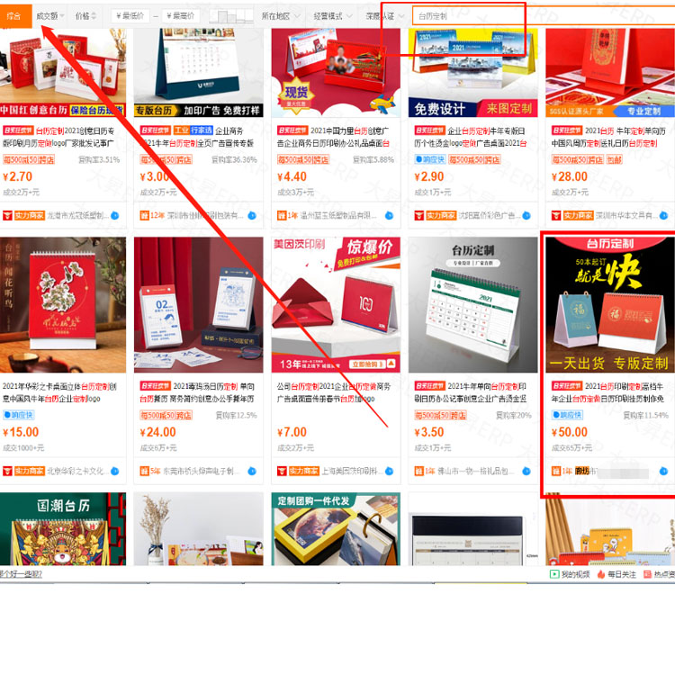 廊坊市日用品行业刘总使用大昇ERP ,店铺核心关键词台历定制,综合排名在阿里首页第一页,成交额在阿里首页排名第九名,效果非常不错的