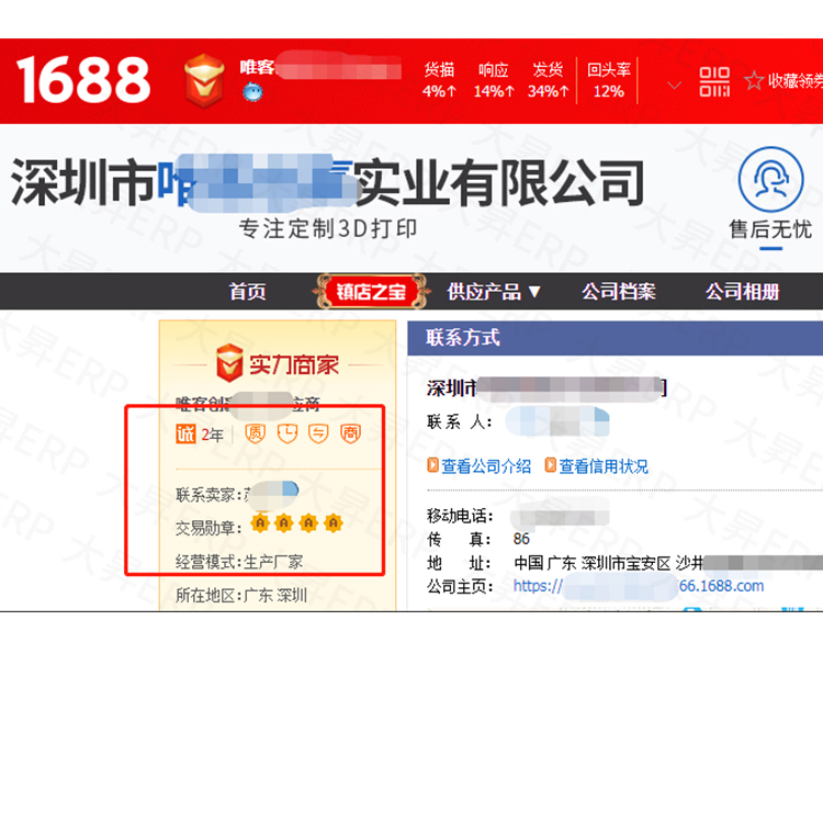 深圳市器材行业刘总使用大昇ERP ,店铺核心关键词3d打印,一直使用我们大昇er...