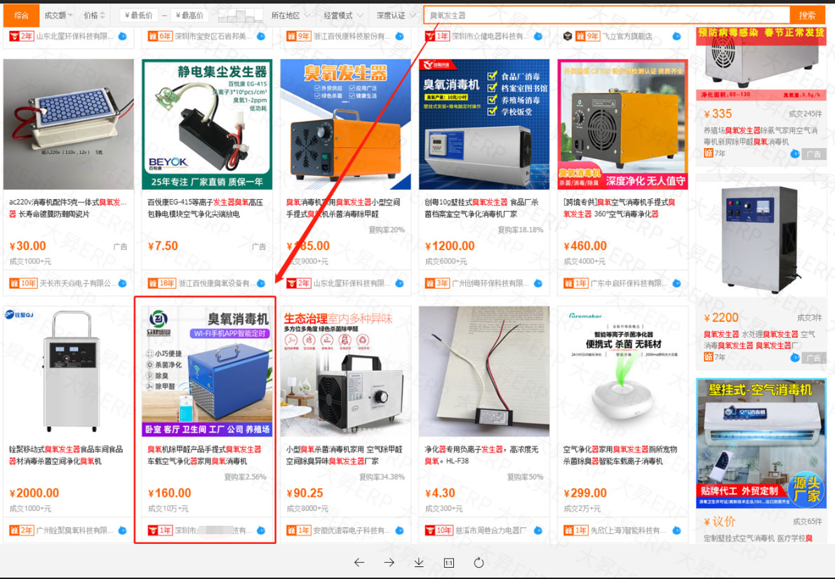 深圳市机械行业使用大昇ERP,店铺核心关键词臭氧发生器,综合排名在阿里首页第一页,成交额在阿里首页排名第一,效果非常不错的
