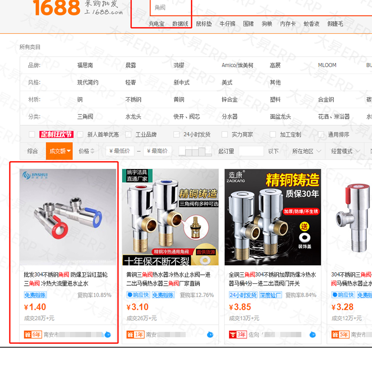 南安市器材行业董总使用大昇ERP ,店铺核心关键词角阀,一直使用我们大昇erp,现在交易勋章达到4A,成交额排名第一,效果非常不错的