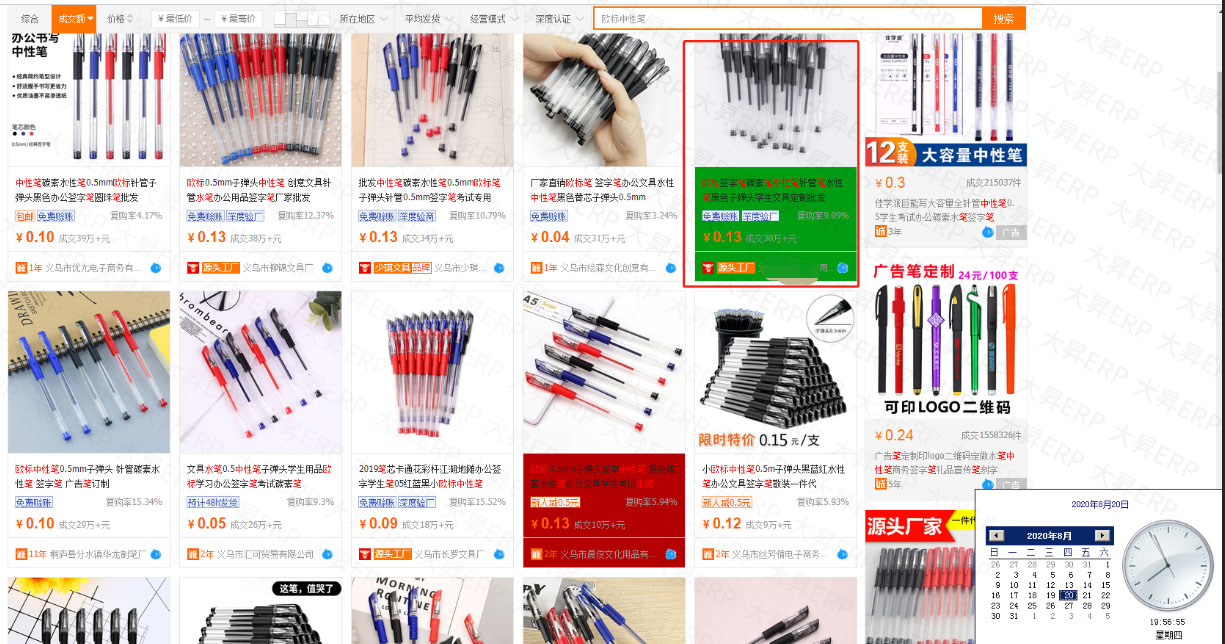义乌市文具行业徐总使用大昇ERP ,店铺核心关键词欧标中性笔,综合排名在阿里首页第一页