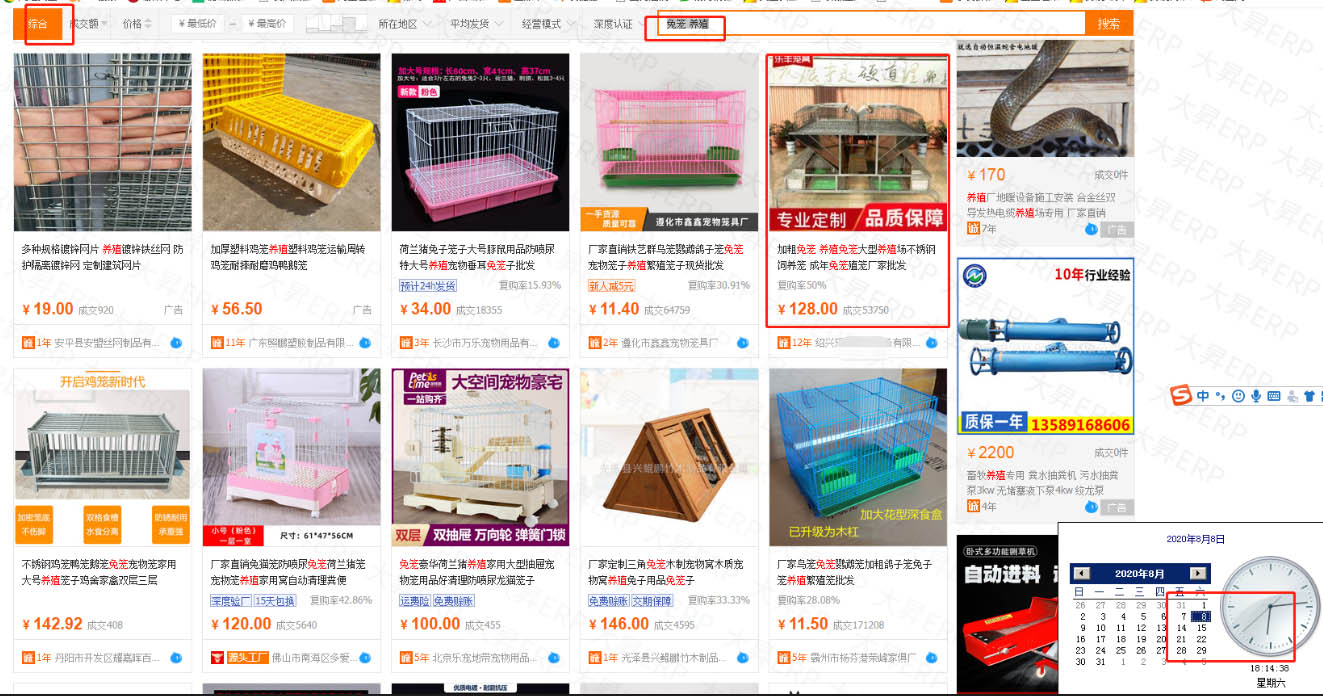 浙江省不锈钢行业蔡总使用大昇ERP ,店铺核心关键词兔笼养殖,综合排名在阿里首页第一页