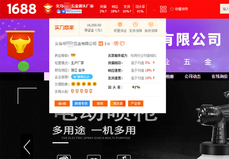 恭喜义乌市五金行业 孙总诚信通实力店铺使用大昇ERP,交易勋章直达5A!