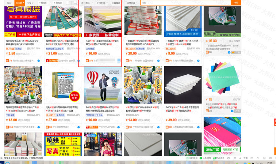 东莞市包装行业唐总使用大昇ERP ,店铺核心关键词:KT板,成交额在阿里首页排名第三名