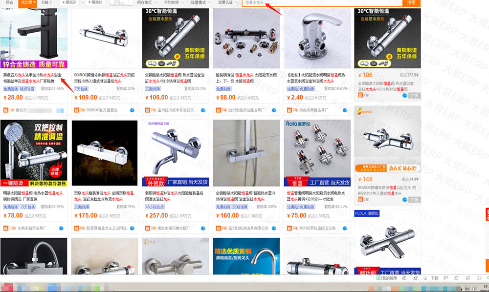 福建省南安市家装建材行业王总使用大昇ERP ,店铺核心关键词 : 恒温水龙头,成交额在阿里首页排名第一名,成交笔数实实在在可见,效果非常不错的