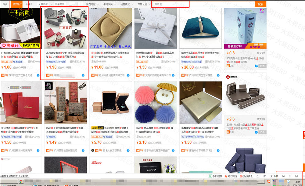 温州市包装行业周总使用大昇ERP ,店铺核心关键词:珍珠盒,综合排名在阿里首页第二名