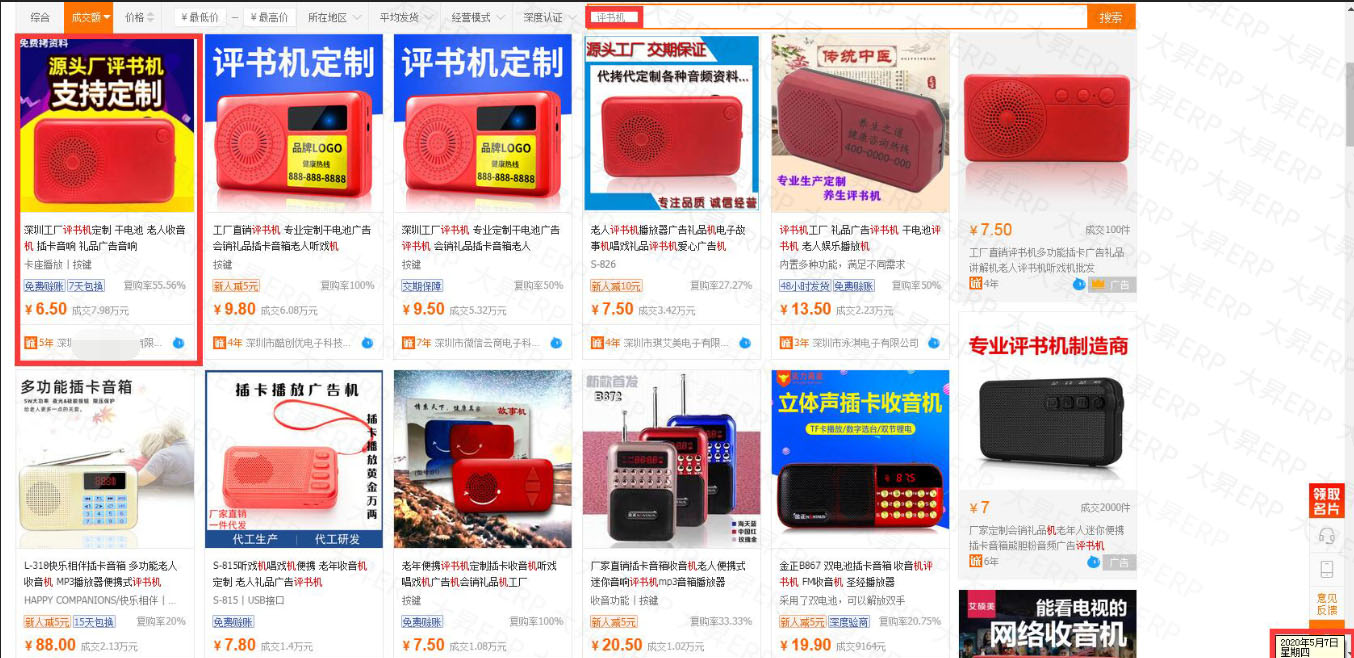 深圳市橡塑行业徐总使用大昇ERP ,店铺核心关键词: 评书机 ,综合排名在阿里首页第一页,成交额在阿里首页排名第一名,效果非常不错的