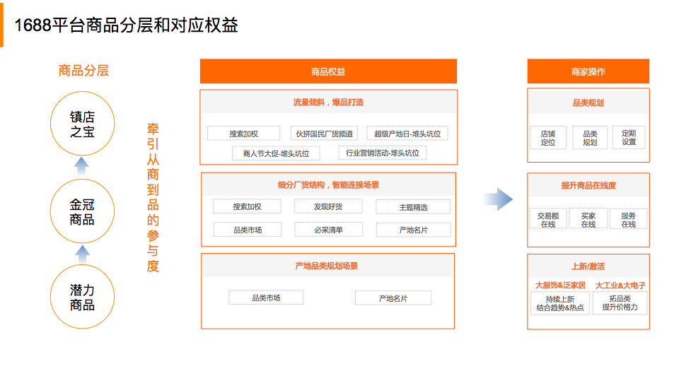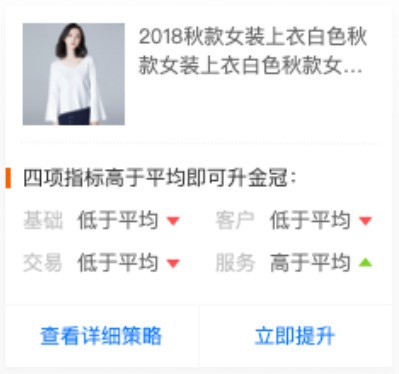 商家通过围绕商品的基础建设,在线交易,客户服务等指标运营提升商品等级。