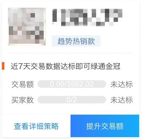 2、"趋势热销款"标签商品通过提升近7天的交易额和买家数达标,即可升级为金冠商品。